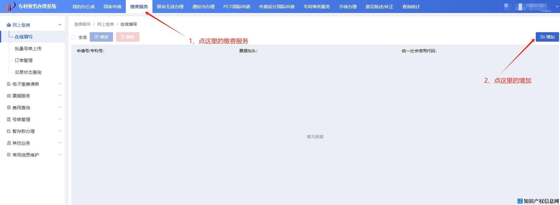 1、一般我们提交完信息,当天就会收到缴费通知,我们到官网→费用办理→在线支付→输入申请号,进行查找缴费订单。