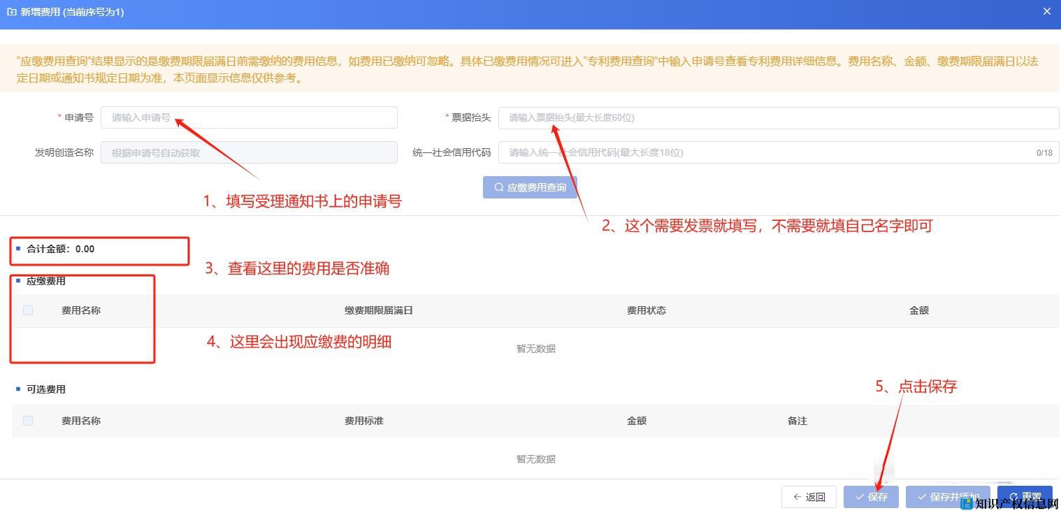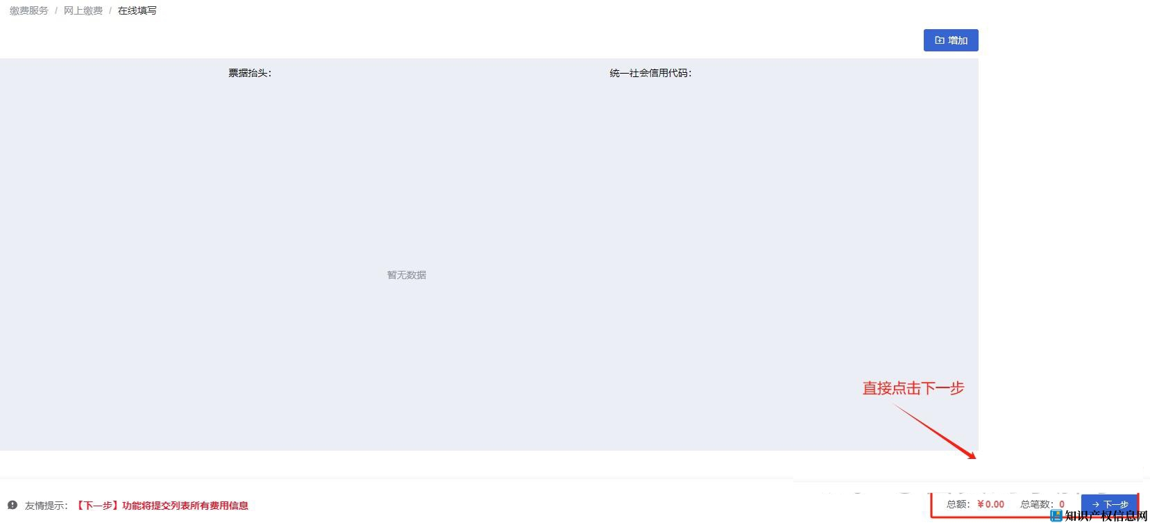 注意:因为我账号中没有待缴费的订单,所以图片中没有内容,还有就是国家给低收入个人(年收入<6万)和学生有费减政策,可减免85%申请费,具体可以看网页右侧办事指南文件中的要求。