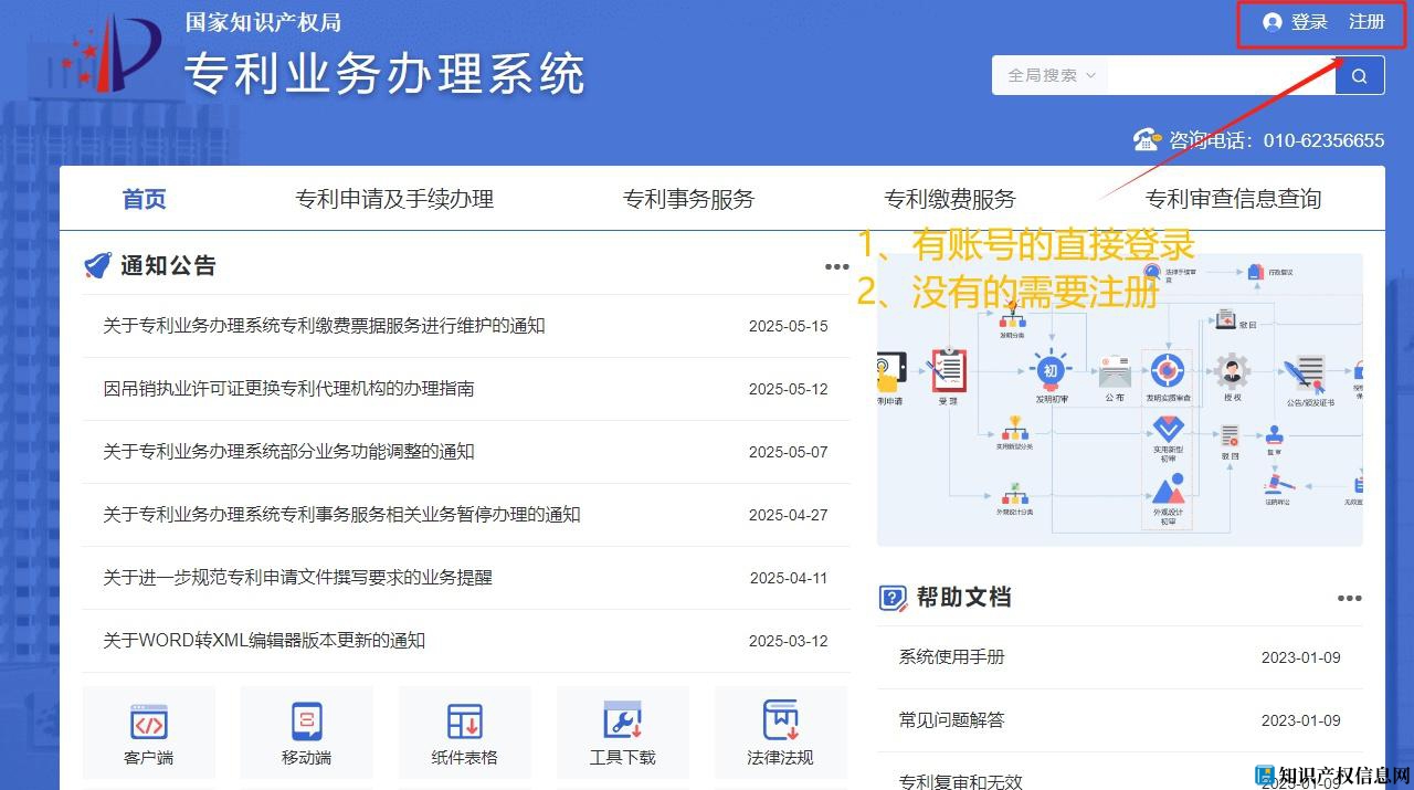 1、打开专利业务办理系统(https://cponline.cnipa.gov.cn/),网页右侧下方有链接。