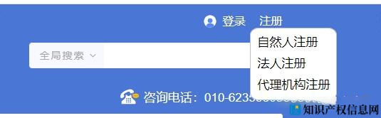 2、打开以后点击右上方的注册链接,这时候会弹出一个对话框,个人就选自然人注册,企业就选法人注册,代理机构注册我们不用理会。