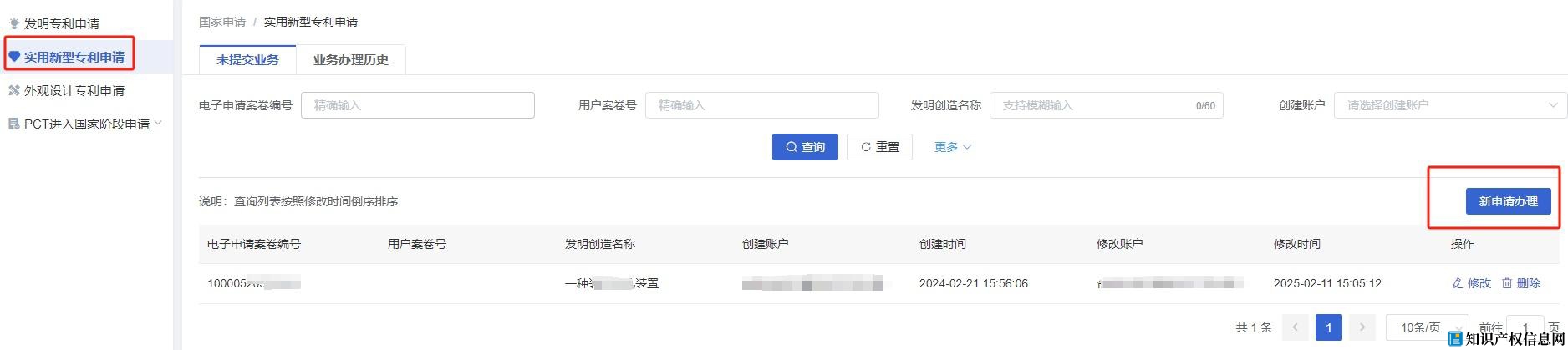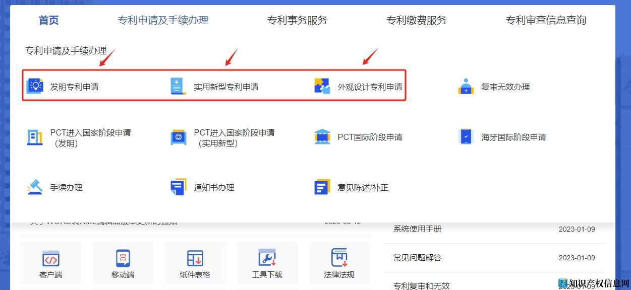 1、账号注册完成以后,我们登录后,按照下图选择我们要申请专利的类型。