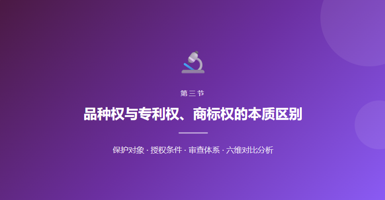 | 对比维度 | 品种权 | 专利权 | 商标权 |